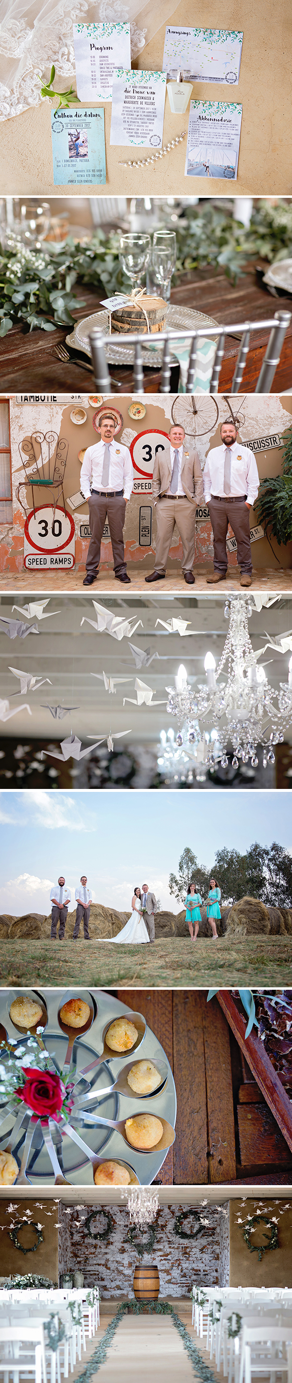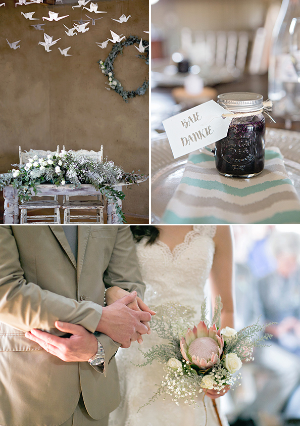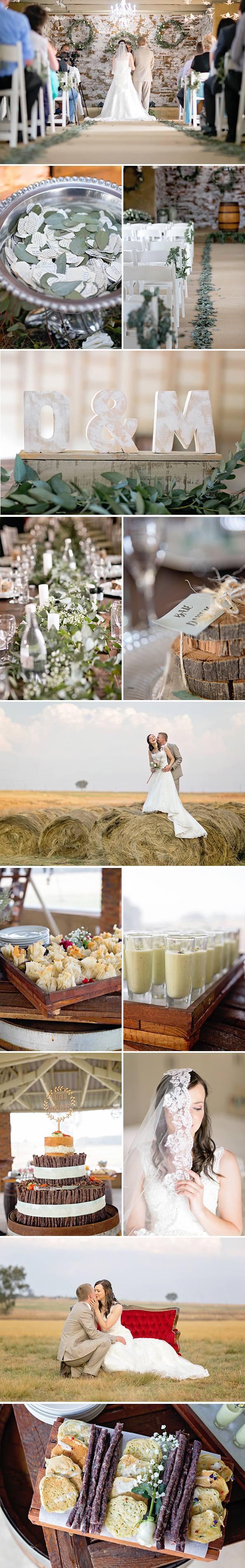 “Dit was sommer net ’n lekker plaastroue wat ons liefde vasgevang het. Ons het ons voete seer gedans! Ons kleurskema was groen en grys, met bruin wat die kleure aanvul. Ek wou graag klem lê op eenvoud van plaaslewe. Die dag het verby gevlieg, maar ek kon kalm bly en alles inneem.”