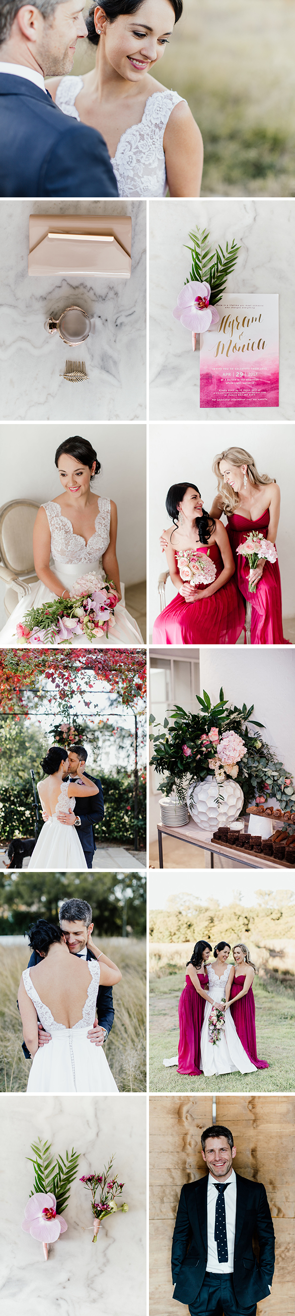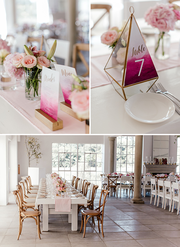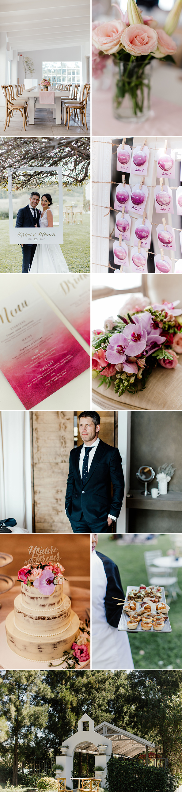 “Ons het vir ons een jaar herdenking by White Light gaan eet en geweet ons wil daar trou. Ons wou ʼn mooi, romantiese, ontspanne, prettige en intieme troue hê en dit was presies die atmosfeer van die groot dag. Dit was meer ʼn familiepartytjie met lekker kos en wyn, asook hope pret en liefde. My rok was perfek, met sakke, soos ek dit wou gehad het. Ek het ʼn Excel-bladsy gebruik om ons uitgawes binne begroting te hou en baie idees op Instagram en Pinterest gekry. Ons kleurskema was skakerings van pienk.”