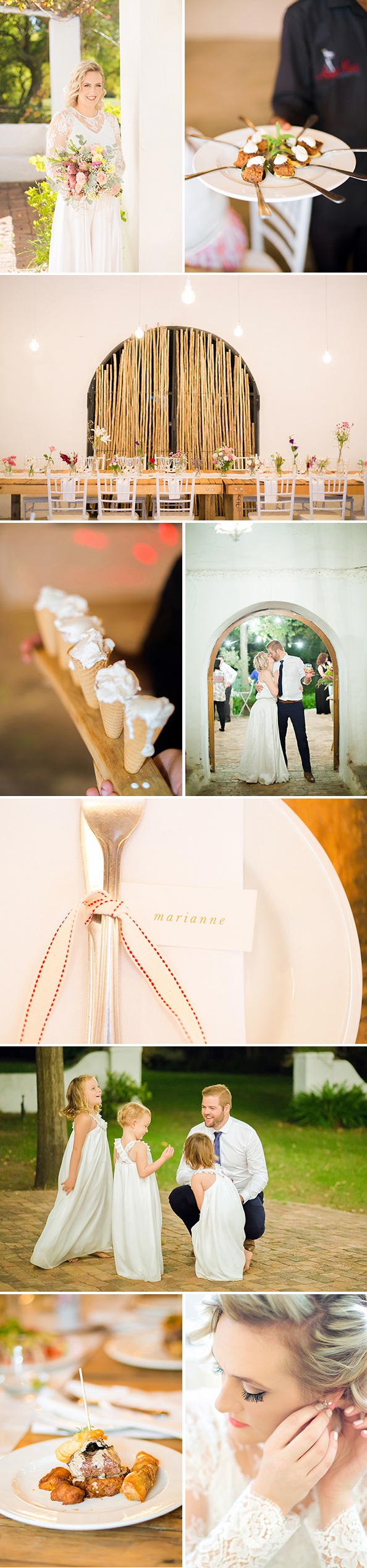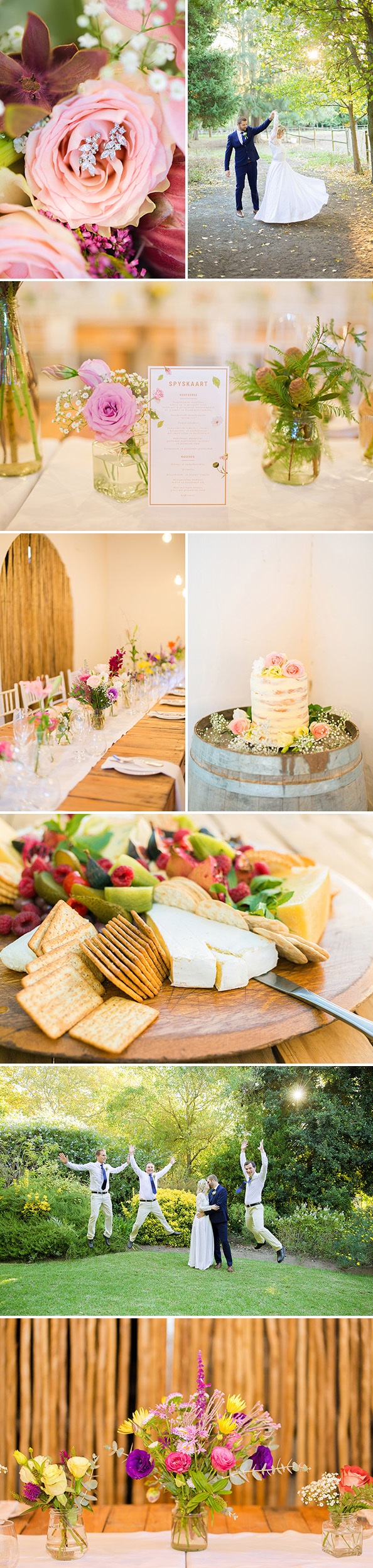 “Vir ons was die belangrikste dat daar goeie kos, goeie wyn en ’n feestelike en gemaklike atmosfeer moes wees. Soos een van ons gaste na die troue opgelet het: ‘Ek het lanklaas troufoto’s gesien waar almal heeltyd so gelukkig lyk.’ En dít is wat ons graag wou hê – ’n bruilofsfees!”