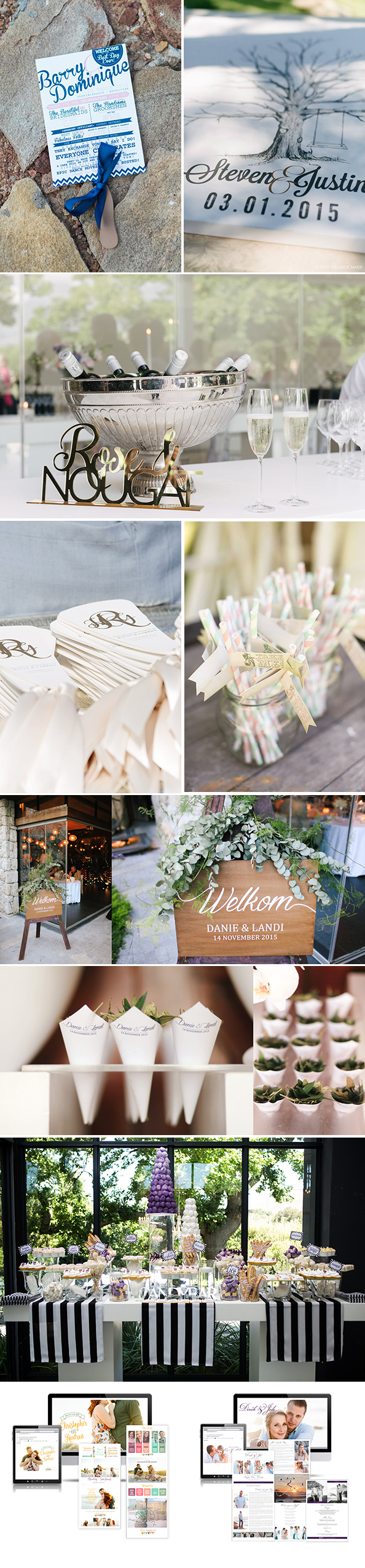 “Oorweeg elektroniese skryfbehoeftes om geld te spaar, met jou onthou-die-datum- uitnodigings, asook trouwebblaaie. Ons spesialiseer in beide en ons sustersmaatskappy, Bridevibe, gaan dit op hulle webblad ook vrystel. Dit bespaar baie geld aangesien ʼn webblad jou so R1 000 uitwerk en alle inligting wat mens benodig vir op die dag is reeds daarop, van die spyskaart, akkommodasie, die gevolg, kaart na die venue, ensovoorts. Ons is ook tans besig om saam met Bridevibe klaar pakette te maak, waar ʼn bruid ʼn tema skryfbehoeftes by ons koop, dit dan self verander en print om geld te spaar. Almal het nie altyd die geld om alles deur iemand te laat doen nie, so dit help darem bietjie om geld te bespaar. Ek sal ook sê koerantjies op die dag is ʼn wonderlike idee. Hierin kan jy ʼn spyskaart en program sit, asook ’n tafellys. Dit help met besparing om dit alles saam te sit, eerder as om hierdie goedjies apart te doen. Ons is ook besig met ʼn reeks tafelnommers om geld te bespaar vir die bruid op die dag. Ons en Bridevibe wil hê elke bruid moet by ons kan koop en geld bespaar. Hulle kan spaar deur meer eenvoudige goedjies wat bekostigbaar is te koop, gebruik en dit kan na die tyd weggegooi word sonder om daaroor te huil.”