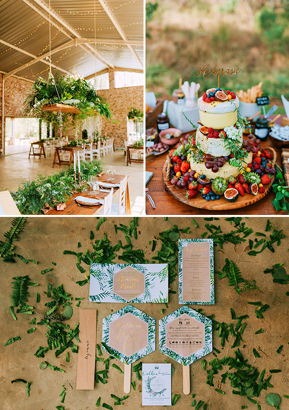 “Die troukoek en Tappas het my moeder vir ons so mooi bymekaar gebring. Die houers vir die sigare en kaasborde (vir die vrouens) het ons self gemaak. Die plekaanwysings wat teen ʼn ou houtdeur gedoen was, het ons self gedoen. Die Jenga-blokkies vir boodskappies en die X en O-speletjie het ons self gemaak.”
