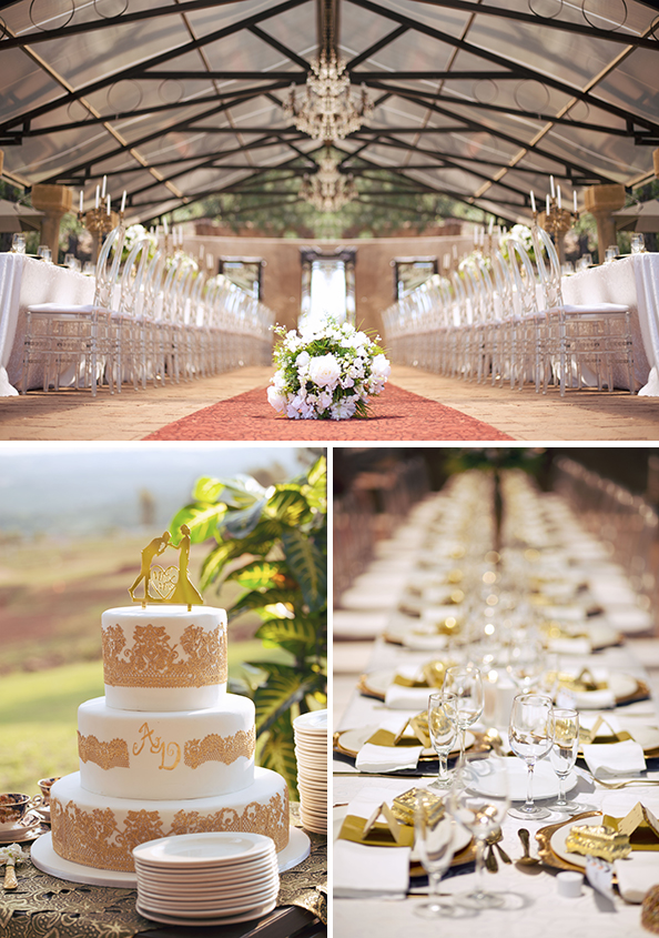 “Kleurskema was wit en goud. Ek wou ʼn Egiptiese soort atmosfeer skep, want daar sou heelwat Egiptenare wees. Ek wou ook nie van die Afrkaanse tradisie afwyk nie, dus was die res van die troue se verrigtinge baie tradisioneel.”
