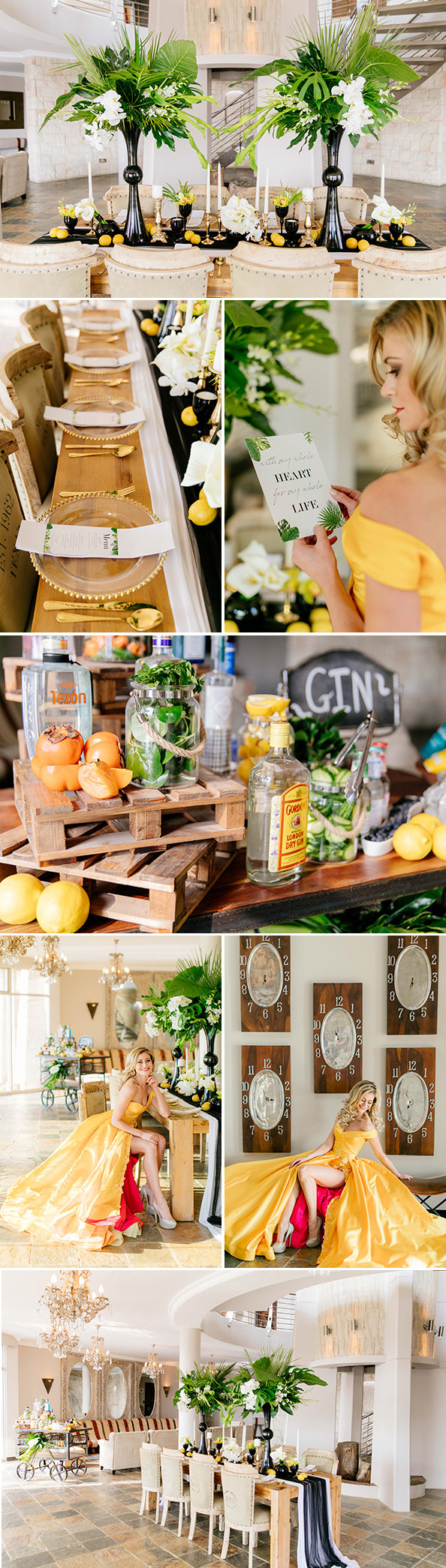 “Die kleur van suurlemoen is helder en ryk, en het perfek gepas by goud en swart wat al hoe meer gewild raak by die moderne troue. Ons het dit as die beste kombinasie beskou om die pragtige heldergeel haute couture rok van Anel Botha Couture te komplementeer. Die hele span was uit hulle vel toe ons die Anel Botha-ontwerperrok sien. Dit het die kurwes van ons model, Mej. Earth 2014 Ilze Sauders, perfek gepas. Anel Botha Couture maak seker dat elke vrou spesiaal voel en pragtig lyk by enige geleentheid.”