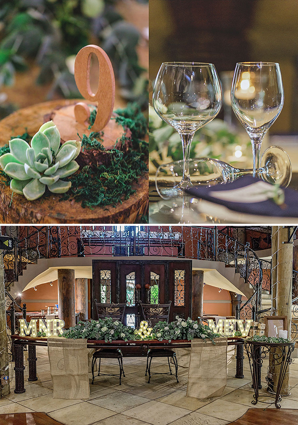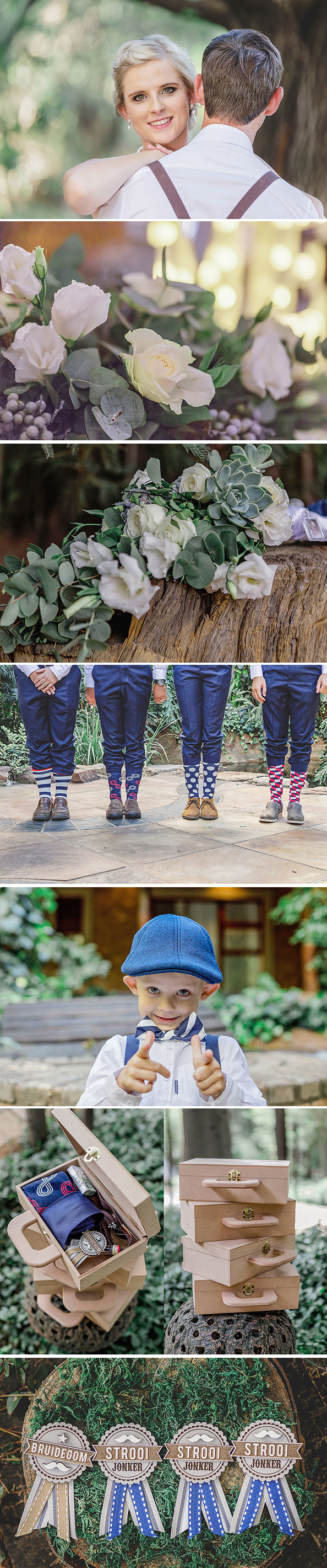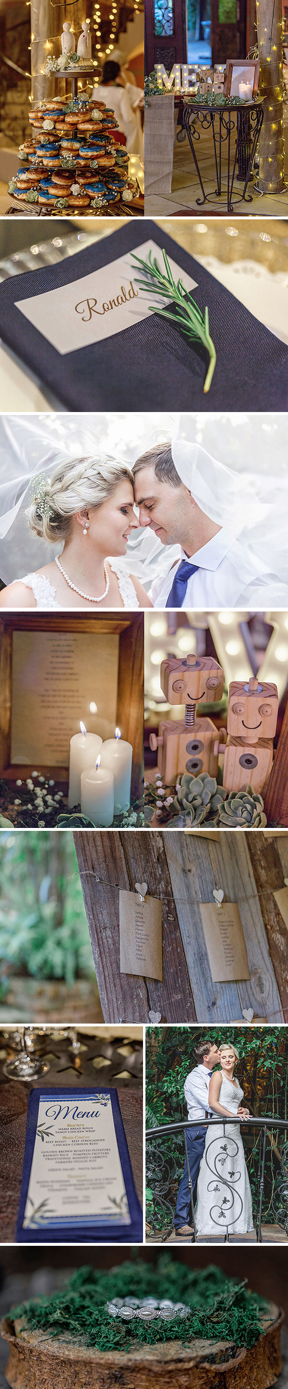 “Ons wou ’n rustige, gesellige en rustieke atmosfeer skep by ons troue. Die kleurskema was vlootblou met ’n bietjie groenigheid by.”