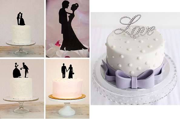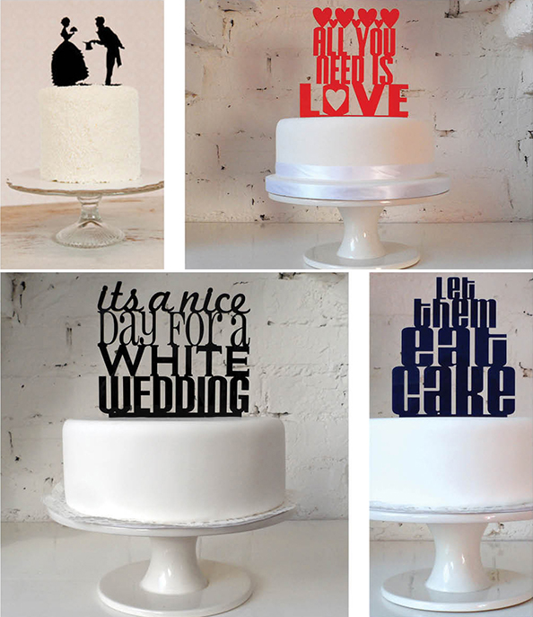 The Wedding Store verkoop die oulikste trou goedjies van bekers, hangers, pantoffels, japonne vir die bruid en bruidegom tot cake toppers. Hierdie silhoeëtte perspeksmannetjies en -vroutjies lyk asof dit uit ’n sprokiesverhaal kom. Omdat dit so eenvoudig is, sal dit nie aandag van jou koek afvat nie, maar eerder die prentjie mooi versier. As jy een van daardie bruide is wat bietjie meer glam soek is hierdie woorde, wat met steentjies bedek is, perfek vir jou.